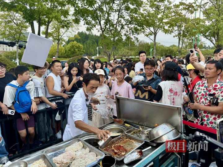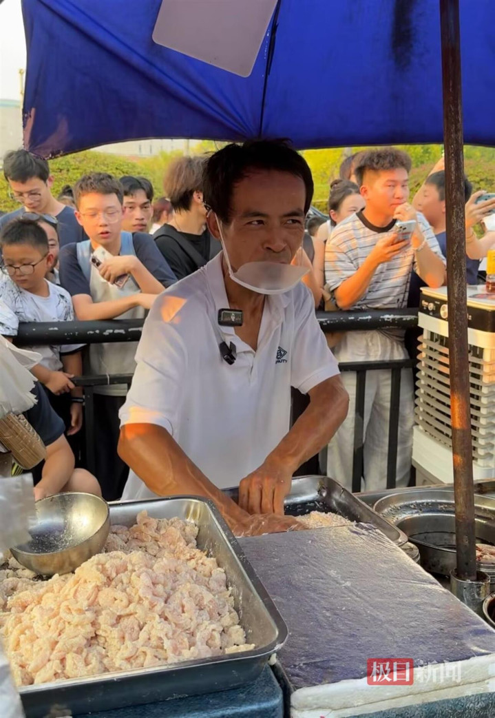 看到一旁等待的顾客,“鸡排哥”立刻用其标志性的亲切语气说:“袋子给我,你的鸡排哥来咯,你一定要跟上我的步伐!”引得周围人群发出一阵欢笑。